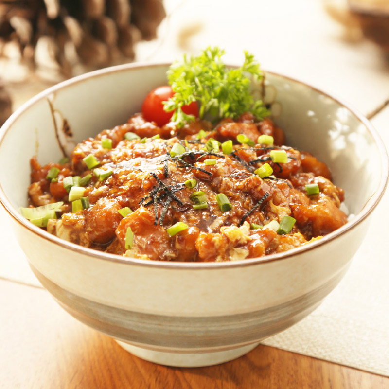 Poulet sauté posé sur un bol de riz