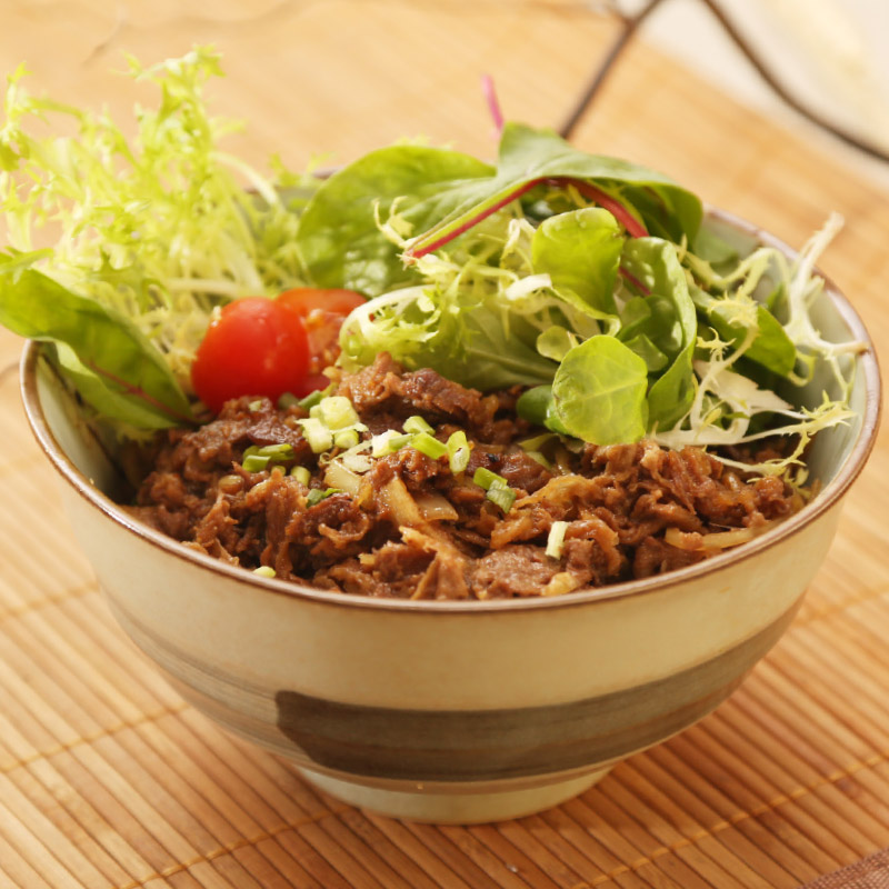 Boeuf barbecue sur un bol de riz