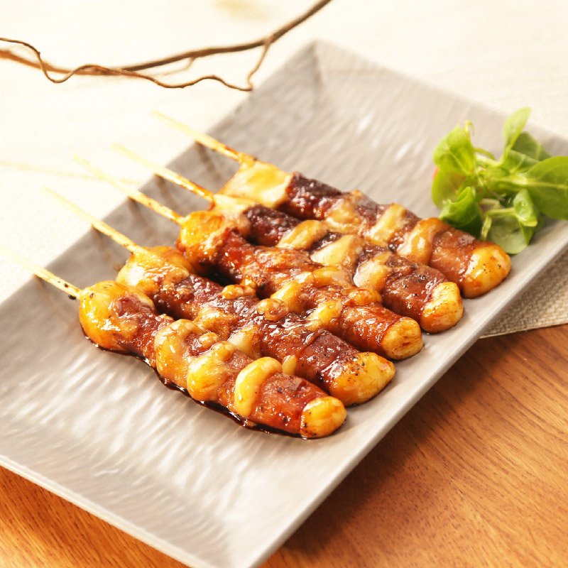 5 brochettes : 1 poulet, 1 boulette de poulet,